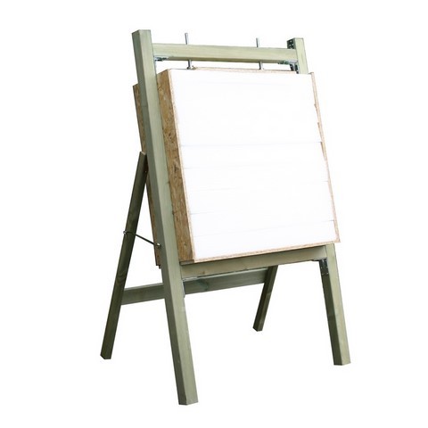 Cette disposition permet d'installer le centre de carte beursault à 1 m du sol (réglementation FFTA) , tout en gardant la possibilité d'installer des blasons pour une configuration tir en salle ou tir extérieur en compétition (centre à 1m30 du sol)