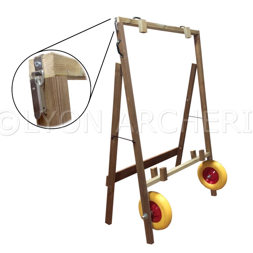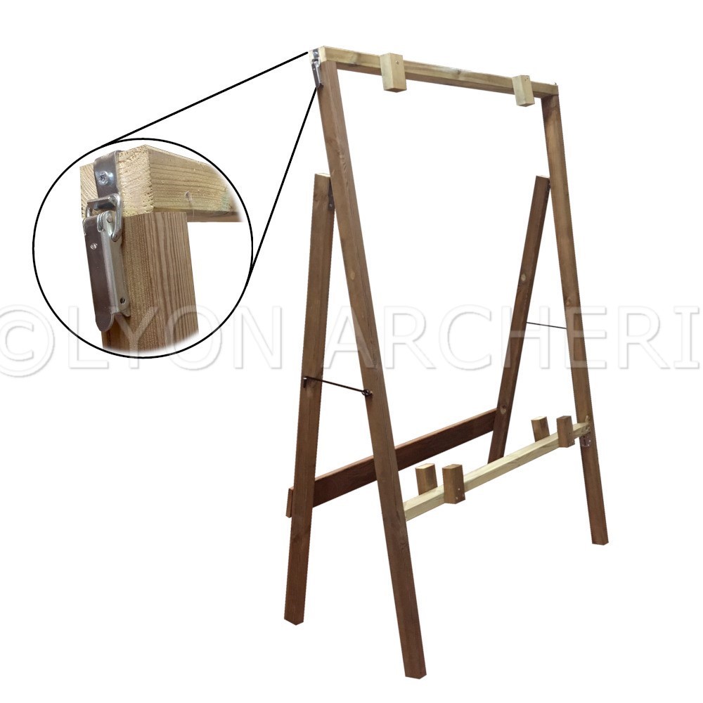 Le cadre et les pieds du chevalet sont en section de bois de 70mmX40 mm afin de permettre une stabilité et une solidité otpimale pour les archers.