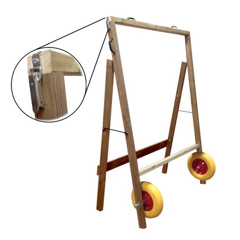 Son kit mobile en option composé de 2 roues increvables de 30 cm et de 2 poignées latérales et 2 poignées supérieures, permets une seule personne de manipuler la cible pour la déplacer et l'installer.