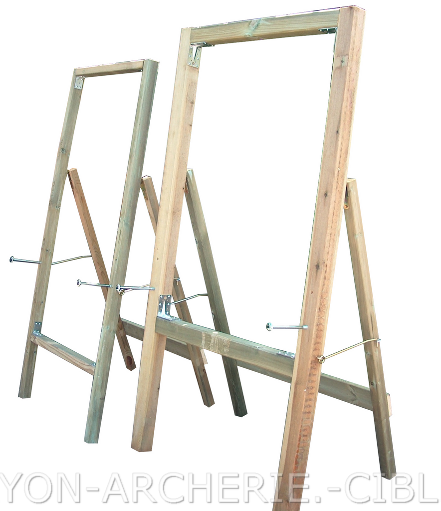 Le cadre et les pieds du chevalet sont en section de bois de 70mmX70mm afin de permettre une stabilité et une solidité otpimal pour les archers.