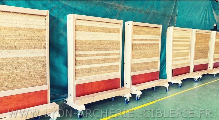 Structure en médium de 38 mm pour éviter les échardes de bois en cas d'impact de flèches et pour permettre au autres activités de pratiquer avec un minimum de risque. L'absence quasi totale de métal apparent,évite les rebonds de flèches et donc augmente la sécurité