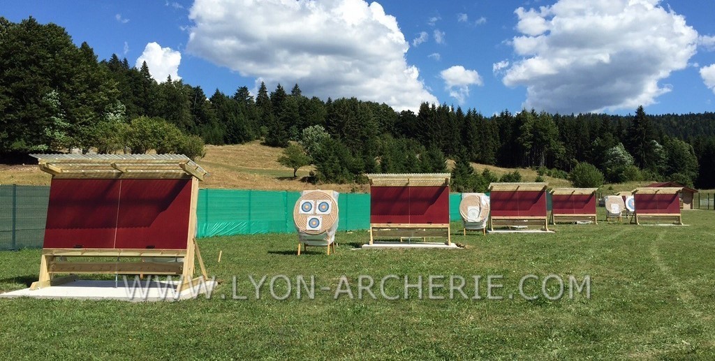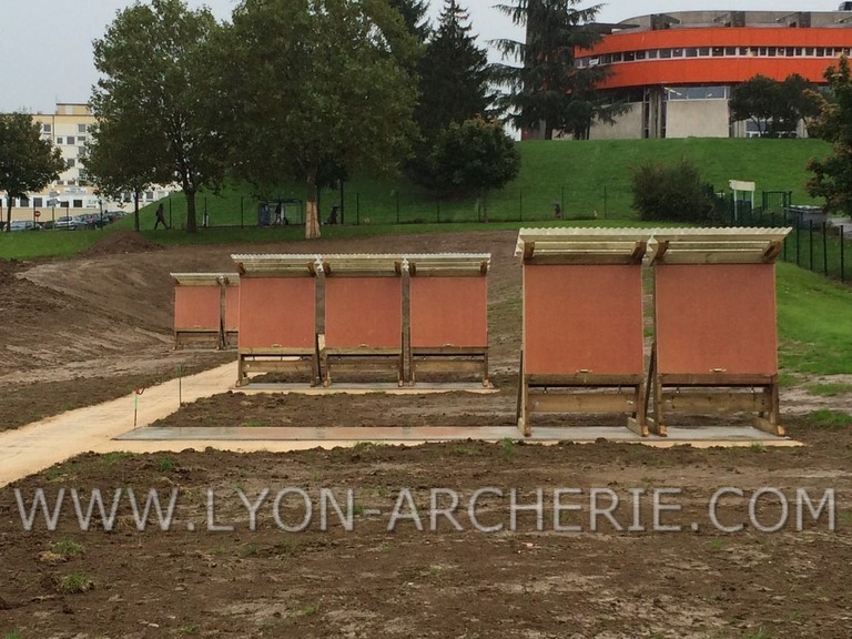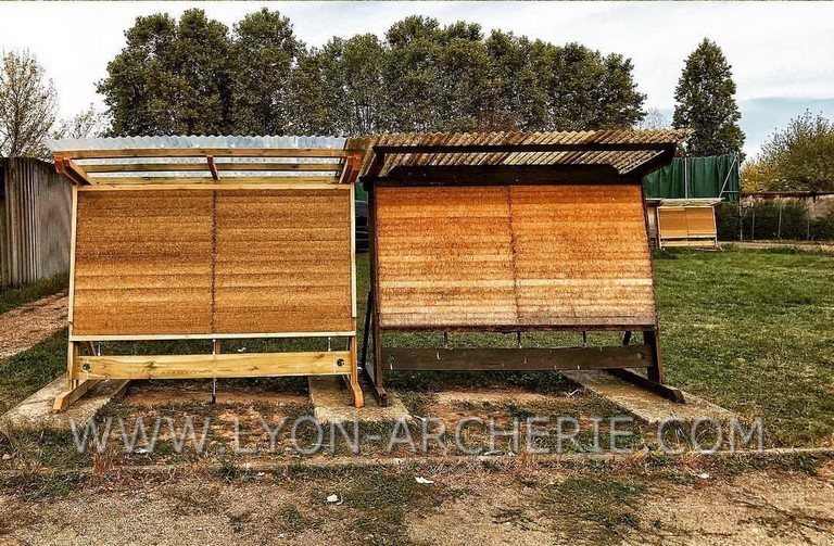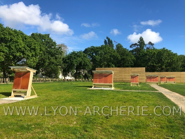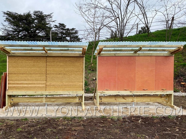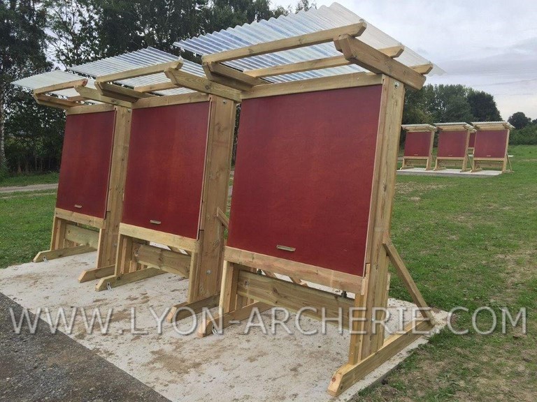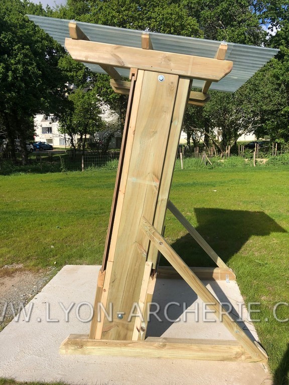 Pour une bonne réception des flèches aux longues distances, les murs sont inclinés de 15% conformément aux normes FFTA (Chapitre B-1-3 sur l'aménagement des terrains en tir extérieur). REGLEMENT FFTA : cliquez ici