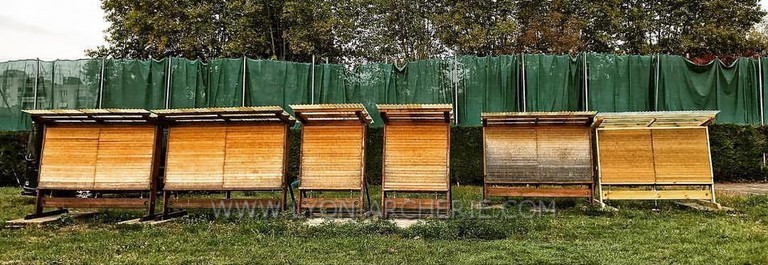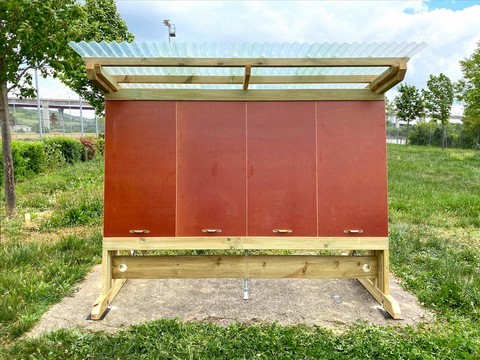Structure en bois Autoclave class 4 Sans entretien. Toit de protection en 1m 45 par 1m 50 en onduline petites ondes en fibre de vert translucides jaune pour limiter les ombres.