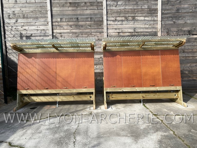 Murs de tir de 1m25 (simple) ou 2m50 (double) de large. Pour une surface de tir de 1m 22 de hauteur 300 mm de profondeur, compter 22 ou 44 bande par module.