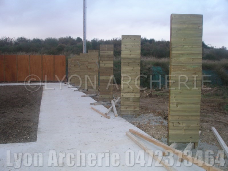 Garde de terrain de tir en bois autoclave classe 4 (toutes intempéries) Section de cadre 70x70 - planche Bouveté en 27 mm Assemblage colle, visse et clou.