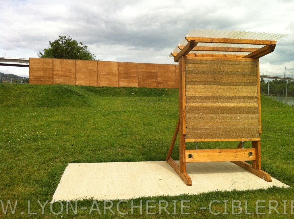 Poteau et jambe de force en section de72x120 en bois autoclave classe 4 (toutes intempéries). Une jambe de force par poteau plus une jambe de force face avant tout les 2 modules pour le 4 m de hauteur.